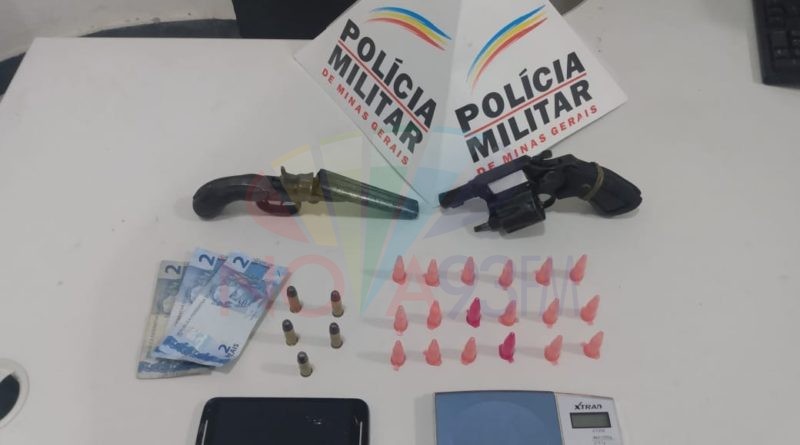 Ontem a noite a Polícia Militar prendeu um suspeito de 24 anos, e apreende duas armas calibre .38 e drogas