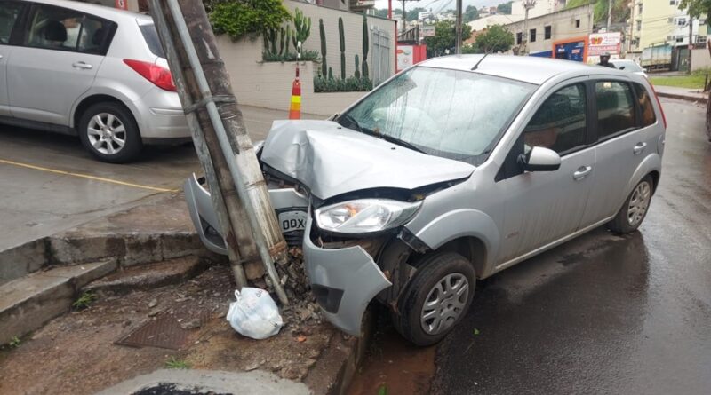 Carro bate em árvore e só para após atingir um poste de iluminação em Itabira