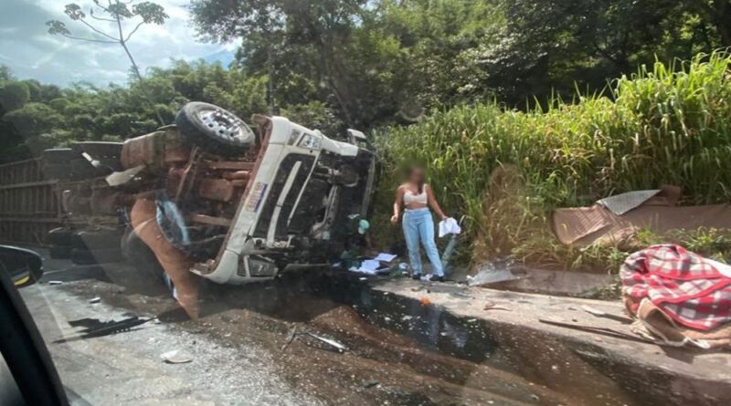 13 pessoas ficam feridas após caminhão com bois tombar em cima de van, na BR-381