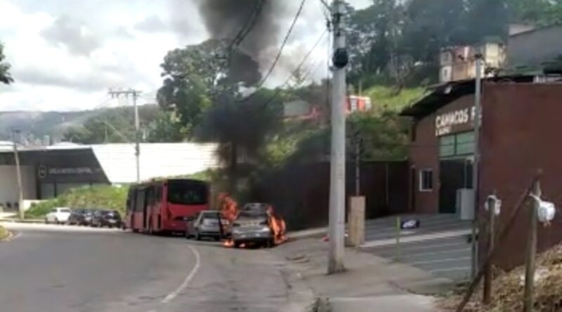 Carro fica destruído após pegar fogo em Itabira