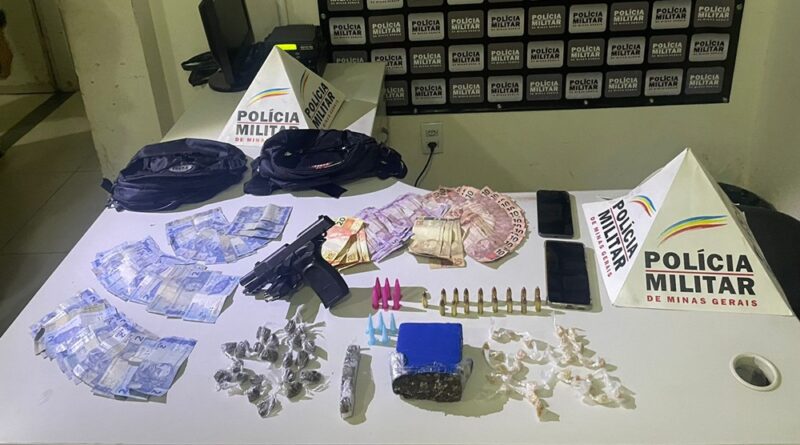 Polícia Militar prende 03 indivíduos por tráfico de drogas, sendo um deles foragido da justiça, apreende arma de fogo e drogas em Itabira