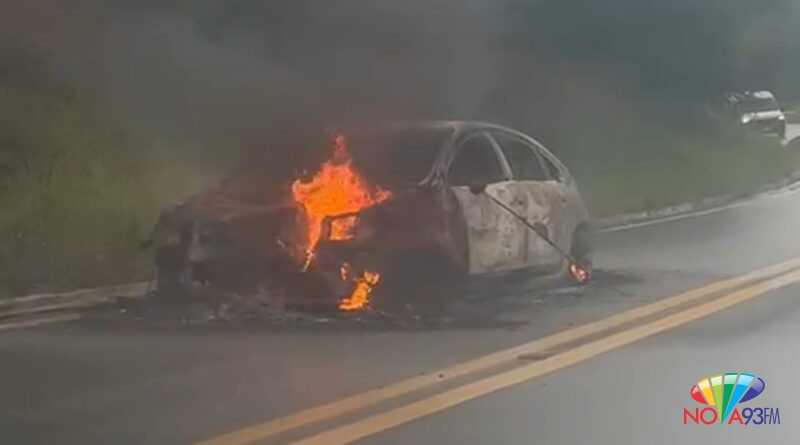 Carro pega fogo na estrada do Forninho