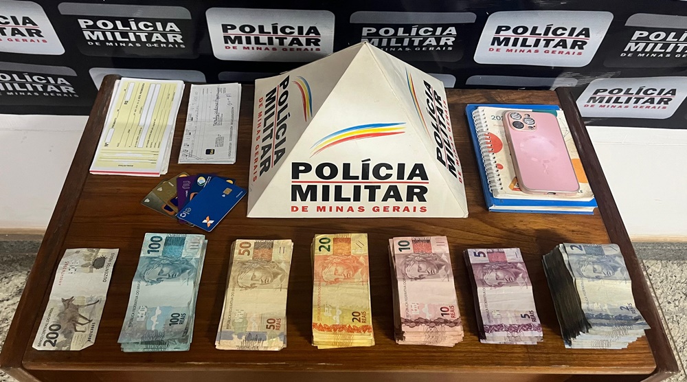 Durante a intervenção policial, a suspeita foi flagrada no momento em que realizava a cobrança mediante ameaças. Na abordagem, os militares apreenderam com ela materiais relacionados à prática de agiotagem, incluindo dinheiro em espécie, cheques, notas promissórias, cadernos de anotações e um aparelho celular.