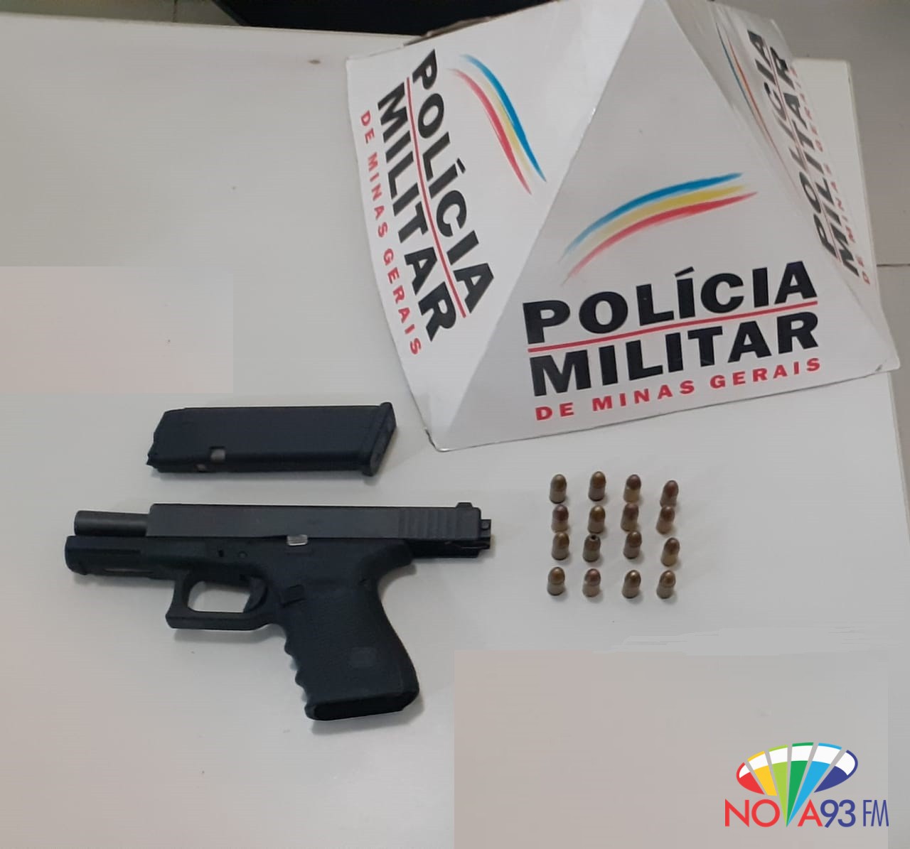 Durante diligencias militares localizaram no local da fuga uma a 01 pistola Glock cal. 9mm e 16 munições intactas cal.9mm, que foram apreendidos e encaminhados para Delegacia de Polícia.